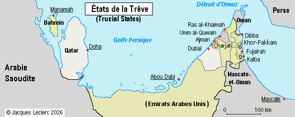 émirats située sur la côte orientale de la péninsule Arabique; ces émirats
