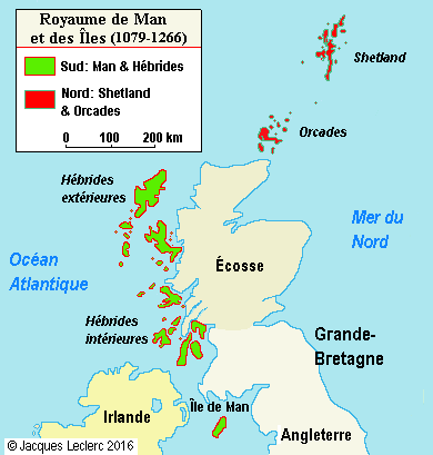 Shertland, les îles Orcades, ainsi que les îles Hébrides, l'île de Man,