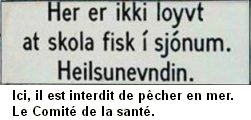 Dans la vie économique, il faut faire la différence entre les entreprises féroïennes, danoises et internationales, car le féroïen, le danois et l'anglais se livrent une concurrence certaine. L'illustration qui suit présente des exemples d'affiches provenant des autorités locales ou des commerces.