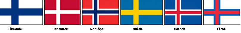 Les drapeaux des pays scandinaves partagent une caractéristique commune : une croix décalée vers la gauche, connue sous le nom de «croix scandinave» ou «croix nordique»; celle-ci est un symbole de leur héritage chrétien commun et de leur histoire partagée. Le Danemark, avec son drapeau appelé "Dannebrog", a influencé tous les autres royaumes scandinaves, qui ont adopté cette croix dans leurs propres drapeaux, même après leur indépendance. Les autres drapeaux sont nommés ainsi: "Siniristilippu" (Finlande), "Dannebrog" (Danemark), "Norges flagg" ou "Noregs flagg" (Norvège), "Tjúgufáni" (Islande) et "Merkið" (Féroé).
