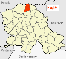 La carte de gauche montre l'ensemble de la municipalité et des localités composant la ville de Subotica (141 554 habitants). La Ville possède trois langues officielles: le serbe (24,1%), le hongrois (38,4%) et le croate (11,3%). La Ville comprend la municipalité du même nom, dite intra-muros, comptant 96 483 habitants. Il reste 45 071 personnes qui se répartissent dans les autres localités ou villages.