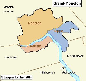 Grand-Moncton (voir la carte linguistique ci-contre), malgré la présence de nombreuses grandes institutions