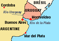 L’Uruguay, ou République orientale de l'Uruguay (República Oriental del Uruguay), est un pays du sud-est de l'Amérique du Sud. Le pays est bordé par le Brésil au nord et au nord-est, par l'océan Atlantique à l'est et au sud, par le río de la Plata au sud, et par l'Argentine à l'ouest. La superficie de l'Uruguay représente 186 215 km², ce qui signifie que le pays est 2,9 fois plus petit que la France. En regard de ses deux voisins (Brésil et Argentine), l'Uruguay peut paraître un bien petit pays: Brésil: 8,5 millions de km² ; Argentine: 2,7 millions km². |