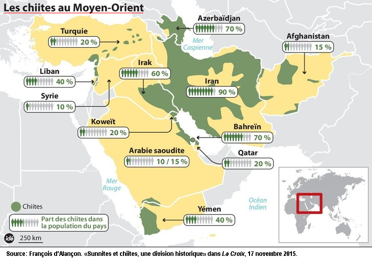 Depuis la mort du prophète Mahomet, les sunnites et les chiites sont à couteaux tirés. L'antagonisme entre les deux groupes musulmans a marqué une grande partie de l'histoire du Moyen-Orient. Les chiites, qui contrôlent l’Iran, sont depuis la révolution islamique de 1979 en conflit ouvert avec les dirigeants sunnites qu'ils considèrent comme «corrompus» et vendus au «Grand Satan» américain. En Irak, le conflit fut exacerbé par le fait que la majorité chiite a été longtemps dirigée par une minorité sunnite, alors qu'en Syrie la majorité sunnite est dirigée par une minorités alaouite dont la doctrine est rattachée au chiisme. Au Bahreïn, la majorité de la population est chiite, mais la famille royale est sunnite.