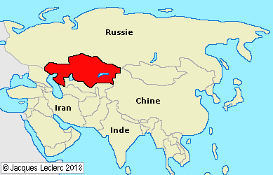 Le Kazakhstan est aussi un pays de steppes (26 % du territoire), de déserts (44 %) ou de semi-déserts, de forêts (14%) et de lacs (48 000). N'oublions pas que le pays compte plus de 6000 km de frontières communes avec la Russie au nord et environ 1500 km avec la Chine au sud. L'amélioration des relations avec ces deux puissants voisins demeure un facteur déterminant pour l'avenir de ce grand pays coincé entre deux grandes puissances. Le pays est aussi une ancienne république soviétique.