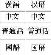 Rappelons qu'en République populaire de Chine, le chinois officiel est appelé putonghua (普通話 ou pǔtōnghuà en pinyin), le mot «mandarin» n'est jamais employé en Chine pour désigner la «langue commune». Le putonghua est une langue très normalisée, et basée sur la variante locale du chinois de Pékin. Or, plusieurs termes sont utilisés pour désigner le chinois officiel: hanyu (han-yu) («langue des Hans»), zhongwen («écriture de l'empire du Milieu»), putonghua («langue commune» et guoyu («langue nationale») à Taïwan. Le mot mandarin correspond à la langue utilisée par les fonctionnaires lettrés qui subissaient les examens de recrutement dans cette langue; sous l'ère Yongzheng des Qing (1723-1735), l'empereur chinois exigeait que les fonctionnaires parlent le mandarin («langue des fonctionnaires»), l'expression n'étant plus beaucoup en usage en Chine. Maintenant, le terme officiel en Chine est putonghua, conformément aux prescriptions de la Loi sur la langue et l’écriture communes nationales de 2001, mais à Taïwan c'est le mot guoyu.