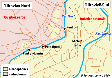 constitution le 15 juin 2008, le mandat de la MINUK fut considérablement modifié en profondeur, de même que sa configuration, et son effectif a été réduit en conséquence. Tout sépare les deux parties de la ville : au nord, le dinar serbe sert de monnaie, au sud c'est l'euro. Au nord règne l'alphabet cyrillique et le serbe; au sud, c'est l'alphabet latin et l'albanais. Il y a deux mairies, dont l'une est reconnue par Belgrade, l'autre par Pristina.